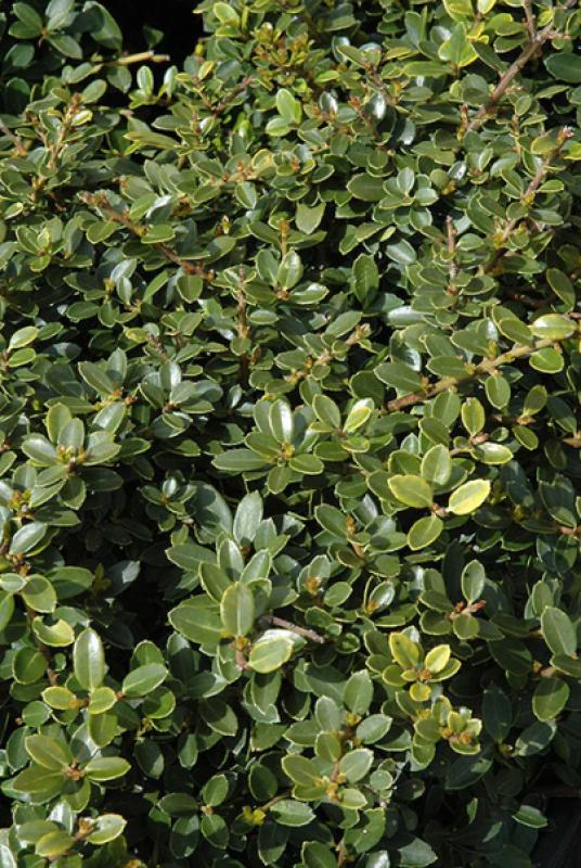 A dwarf evergreen shrub with a naturally compact, rounded shape, ideal for massing and garden use, popular in the South, tiny leaves add aesthetic value, takes pruning very well.