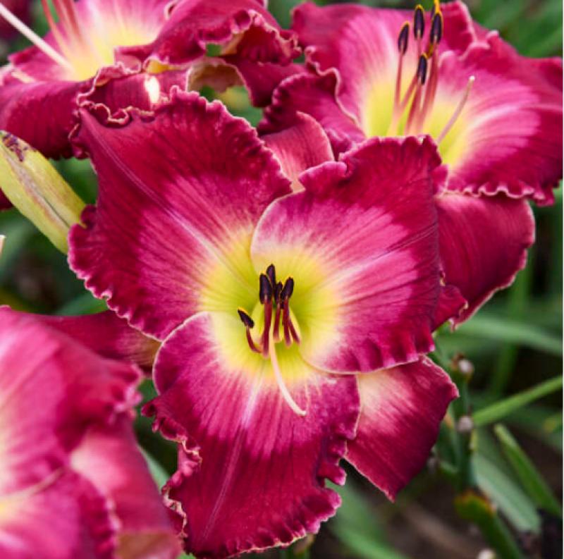 'Blood, Sweat and Tears' is aptly named to reference the years of hard work by renowned breeder Karol Emmerich to find a truly exceptional red daylily. Massive 6" raspberry red flowers are complemented by a wide rosy pink eye that leads to a yellow throat. A thin white margin edges each petal. Flowers are held on proportionate scapes, just above the foliage. There are no hardiness concerns with this red daylily as it was bred and selected in Minnesota.