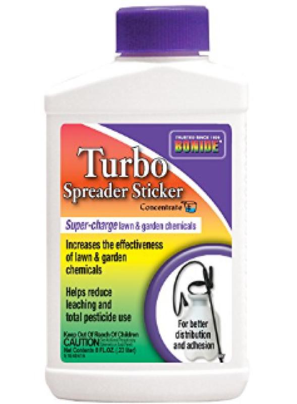 Provides better distribution and adhesion of all types of insecticides, fungicides and herbicides. Spreader-sticker makes the chemical work better to give the desired results. Add turbo spreader-sticker to your spray tank only after other spray materials have been added and mixed. Highly recommended when using liquid and wettable powder pesticides. Mix turbo with 10 parts water, then add finished material to rates described on label. Biodegradable. Ingredients: Combination Of Spreading, Sticking And Penetrate Agents.