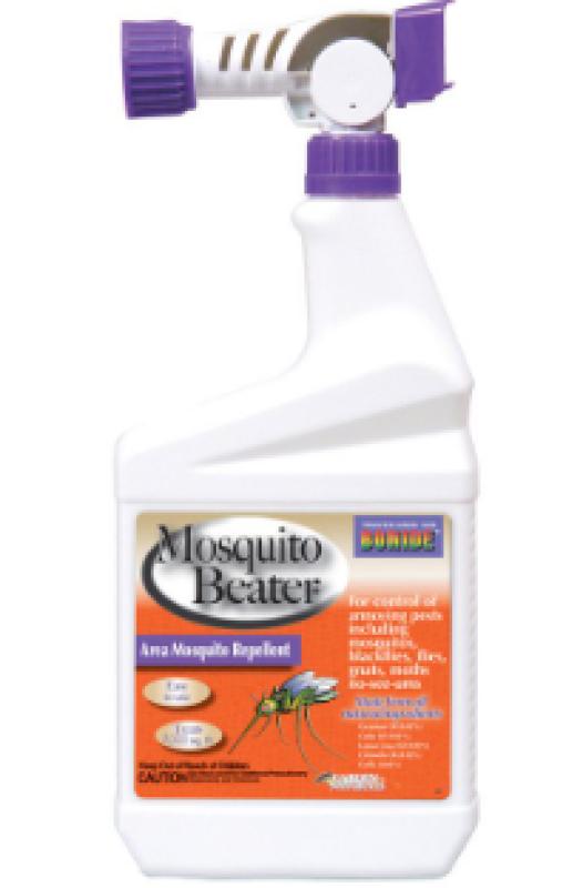 Control mosquitos at home with Mosquito Beater Ready-to-Spray from Bonide. This area mosquito repellent treats up to 5,000 square feet outdoors. Apply around your lawn, patio, barbecue, swimming pool, picnic, camp site, tennis court and more. When used as directed, this product is people and pet safe and can be applied to areas where children and pets play. Natural cedarwood, citronella, geranium and lemongrass oils provide effective and long lasting relief from mosquitos while leaving behind a pleasant scent. This product arrives ready-to-spray in a garden hose attachment bottle. To use, shake well and attach to hose.