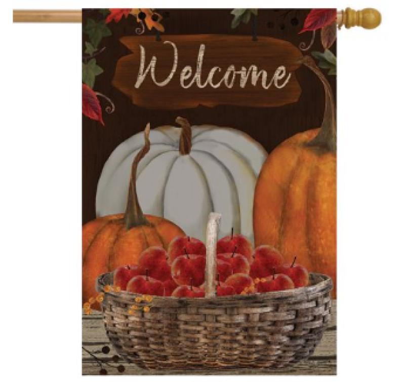 Celebrate the beauty of autumn with the "A Time to Gather" Welcome Pumpkins House Flag. Featuring a charming arrangement of rustic pumpkins, fall foliage, and a welcoming message, this flag sets the perfect tone for the season.