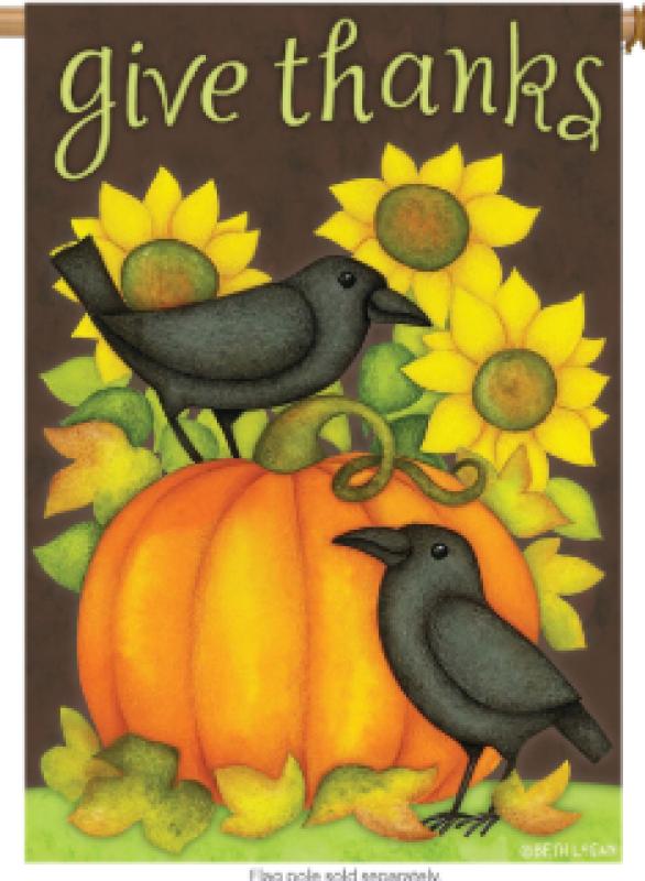 Give thanks crows primitive house flag fall thanksgiving 28"x40" briarwood lane.