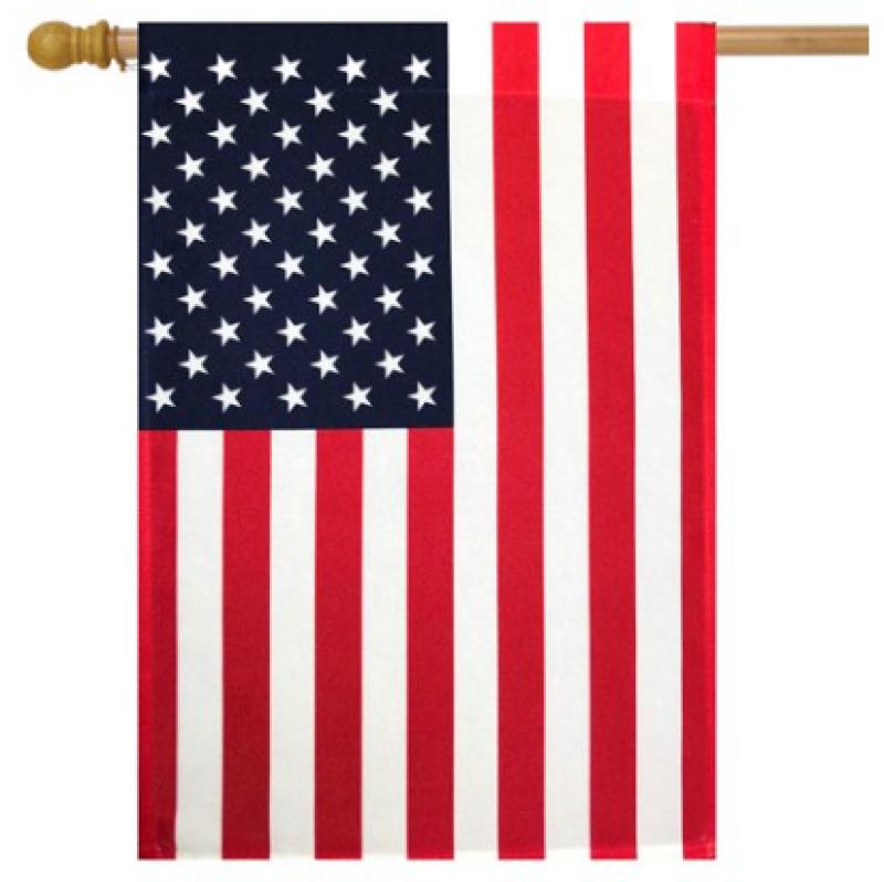 American Flag House Flag. Measures 28 x 40. Weather resistant material extends the life of this flag and helps allow the flag to slide onto a flag pole. Add a unique and patriotic touch to your home and garden!