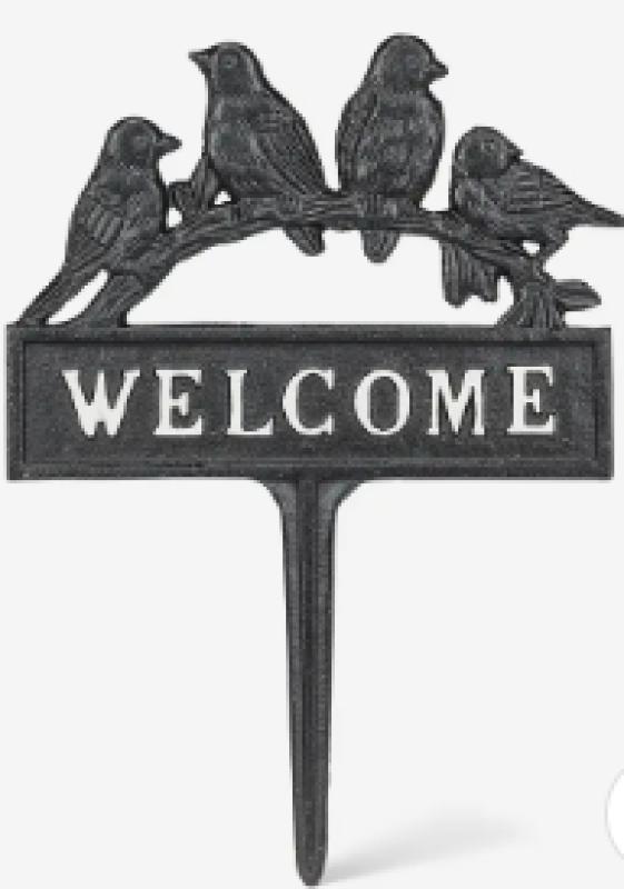 Welcome guests with charming rustic elegance using this cast iron Welcome Garden Stake with Birds. Designed to add a warm and inviting touch to any garden, flower bed, or pathway, this piece brings nature-inspired beauty to your outdoor space. Part of an extensive collection of cast iron.
