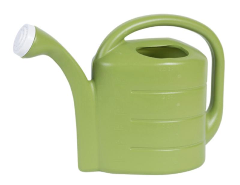 A staple for every gardener, the two-gallon Deluxe Watering Can is designed for ease, comfort, and superior functionality. Durable, UV-protected, thick-walled, shatter-proof plastic in green color including white nozzle. Water capacity measurements are embossed on the can.