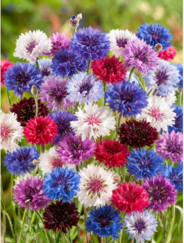 "Bachelor Button Livingston / Choice Mixture" refers to a specific variety of Bachelor's Button (Centaurea cyanus), also known as Cornflower, that produces a vibrant mix of blue, pink, purple, red, and white flowers. It is an easy-to-grow, sun-loving plant with long stems, making it suitable for mass plantings, cut flowers, and attracting pollinators, blooming from early summer to fall.