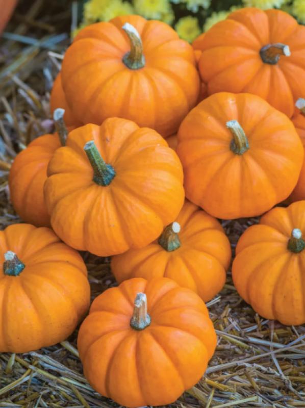 Adorable miniature pumpkins—just 3" across and 2" high—are Halloween-ready and happy-making fall/winter decorations. Plants produces six or seven mini pumpkin masterpieces that kids love at first sight. Garden Hint: Plant 4–6 seeds in groups 6–8 apart, or sow in rows, thinning to one plant every 2–3.