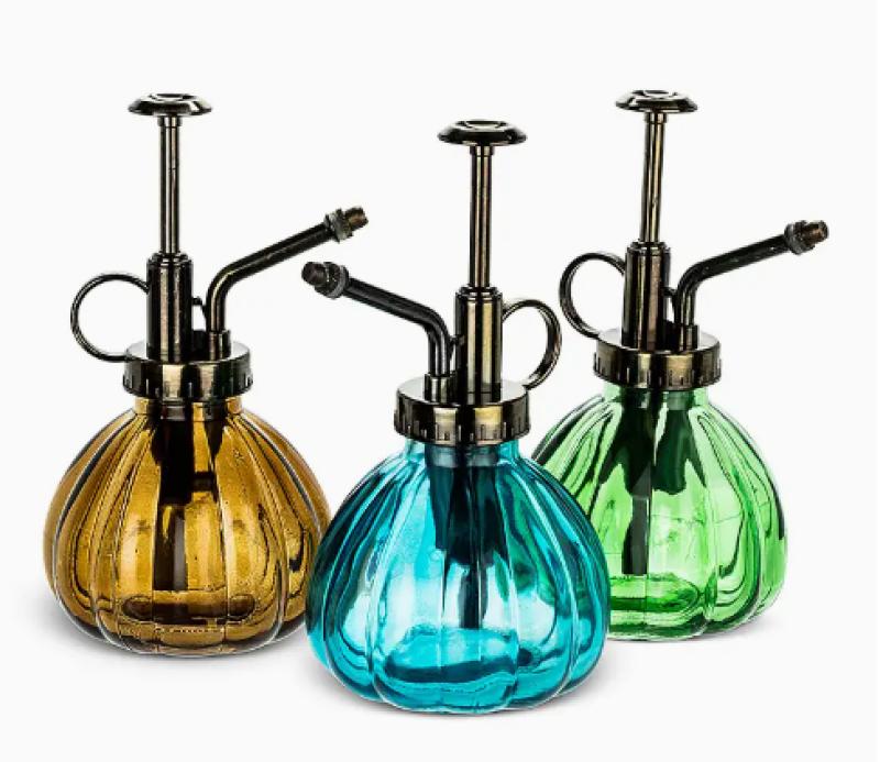 Keep your plants hydrated in style with this assortment of colorful Bulb Plant Misters. Crafted out of plastic and glass, these three assorted misters in translucent blue, brown and green feature an easy-to-use pump and curved handle — an elegantly simple complement to your indoor or outdoor garden alike.