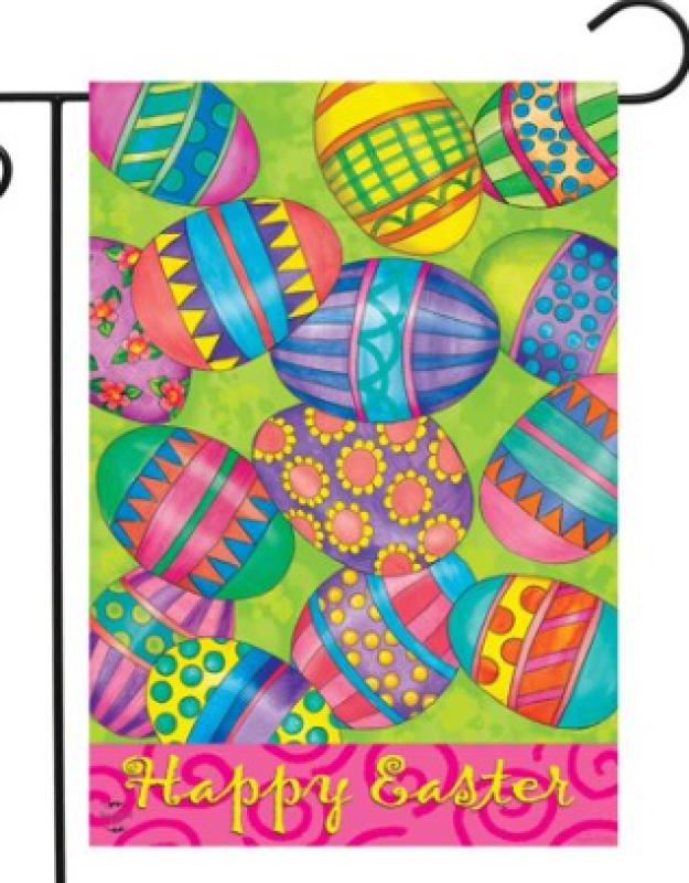 Add a colorful, welcoming touch of the season to your home and garden with the premium Briarwood Lane Easter Eggs garden flag. The original artwork printed on polyester material designed for outdoor display provides unique designs that are as durable as they are beautiful! Flag stand sold separately Size: 18"H x 12.5"W.