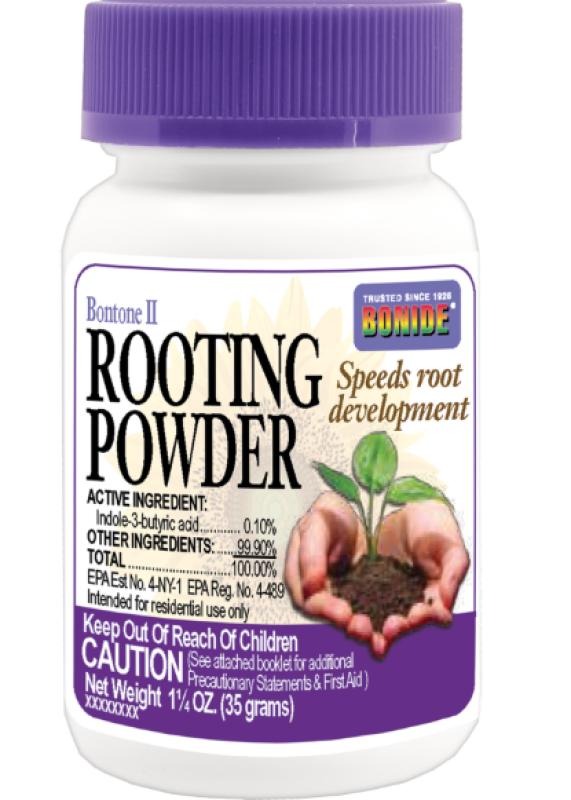 BONIDE Bontone Rooting Powder is a ready to use IBA root stimulator that speeds root development of cuttings, corms, bulbs and roots of plants. It can be used on many types of plants including ornamentals, vegetables, fruit trees and berries. It's an easy inexpensive way to multiple your plant supply.