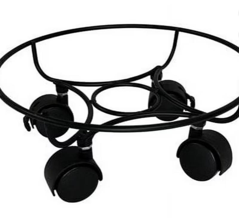 Keep larger plants elevated and mobile using this Gardman Heavy-Duty Plant Caddy by Harbor Gardens. This moveable planter's matte-black, epoxy finish enhances greenery while offering years of use both indoors and outdoors. Its sturdy, metal rod construction forms a 9.875" diameter circle, allowing for pots with bases up to 9" in diameter. From each of its four black casters, the frame converges into a pattern of a small circle within a curved diamond, supporting square and round planters alike. The caddy's 4" height holds pots approximately 2.375" off the ground, providing air flow beneath and versatility in placement. Two of the four plastic casters are accompanied with locks, ensuring stability while on display and while plants are being attended to. Guarantee more ideal placement and relocation of large plants with this Heavy-Duty Plant Caddy by Harbor Gardens.