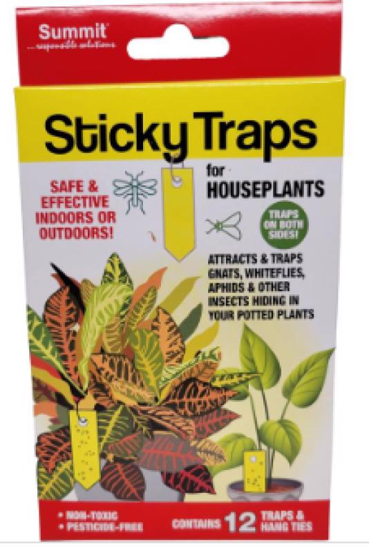 Summit Sticky Traps for Houseplants attracts & traps destructive fungus gnats, whiteflies, aphids, thrips, leaf miners & other harmful insects hiding in your potted plants, without the use of pesticides.