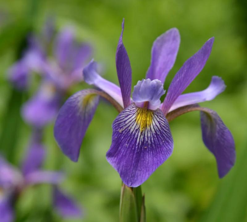 Iris versicolor brings color to moist, boggy areas where most other plants struggle. It is a native to much of the east coast USA, and is found in marshes, swamps, wet meadows, and other naturally moist or wet areas. 'Purple Flame' Blue Flag would be excellent planted en masse at the edge of a pond.