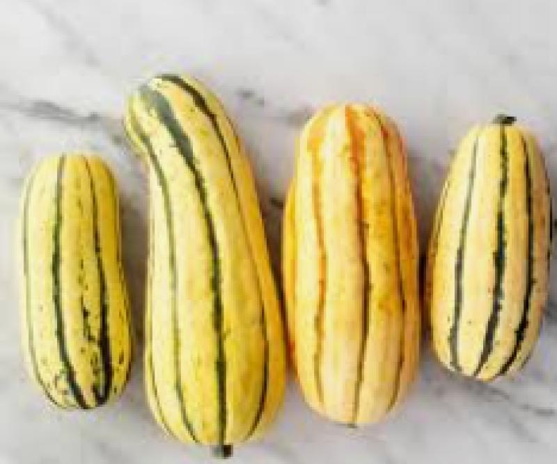 Delicata Squash is an oblong-shaped, yellow-green variety that’s native to North and Central America. Scientifically, it is Curcurbita pepo. Culinarily, it’s a true treasure! Delicata is classified as a winter squash because when raw, its outer skin is hard like a butternut. Botanically, it’s more closely related to summer squashes like zucchini; its skin isn’t as tough as it first appears, and when you cook it, the skin becomes barely detectable. Because of this softer skin, Delicata doesn’t store as well, or for as long, as other winter squash varieties, mak- ing it an autumn treasure that’s worth seeking out during its short tenure.