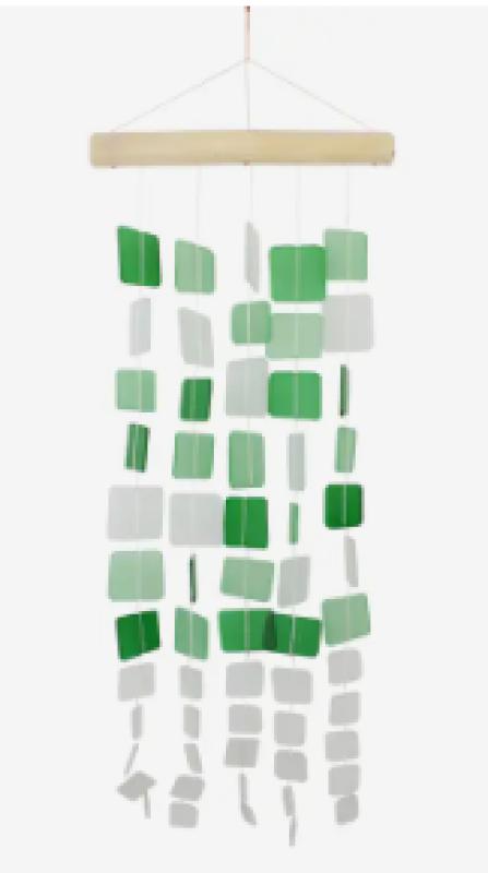 Green and White Squares Tumbled Glass Wind Chimes Green and White