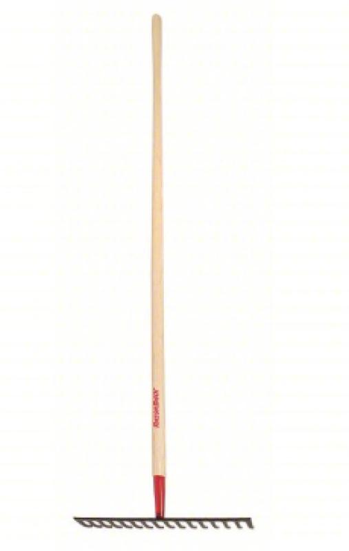 Level head rakes set their spade-like tines at a right angle to the handle for making uniform contact to break into compacted soil, scrape debris from turf and garden beds, and push material into piles. Also known as flat head rakes, they can be flipped to use the top edge for leveling and smoothing landscaping materials and fill.