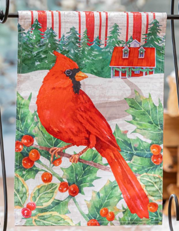 Cardinal Holiday Farmhouse Flag 12.5"X18"