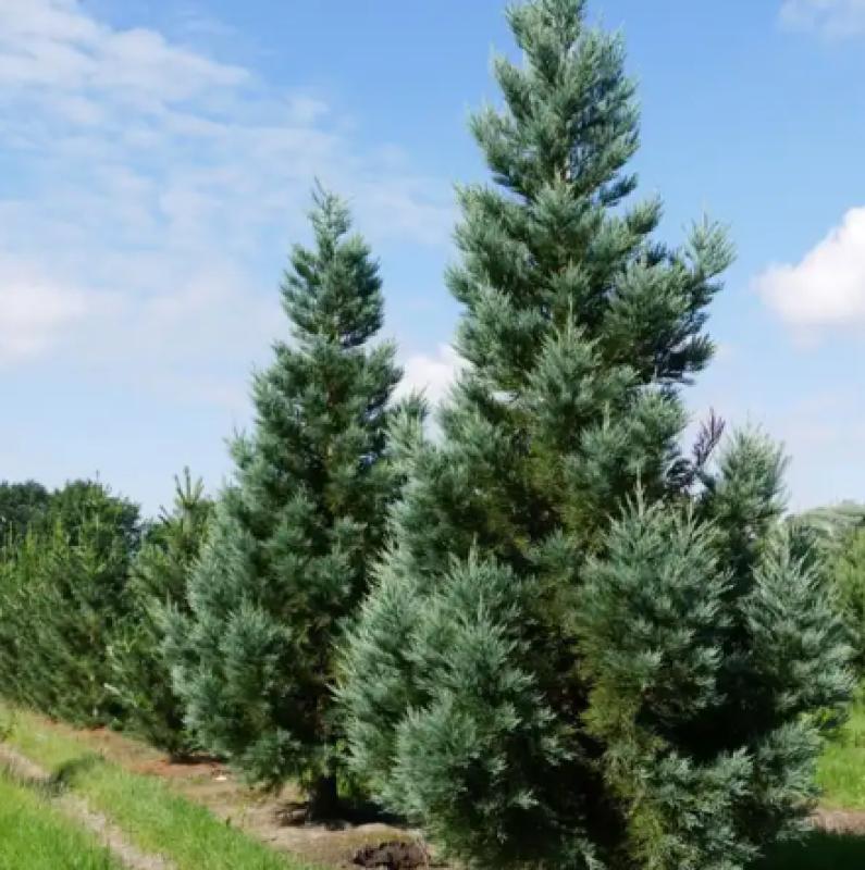 Sequoiadendron giganteum 'Glaucum', also known as the Blue Giant Sequoia, is a cultivar of the Giant Sequoia with silvery-blue-green foliage and a more narrow, columnar, and somewhat slower-growing form than the species. This evergreen conifer thrives in full sun and well-drained soil, is hardy in zones 6-9, and can eventually reach immense heights, making it an impressive specimen tree for large landscapes or parks.