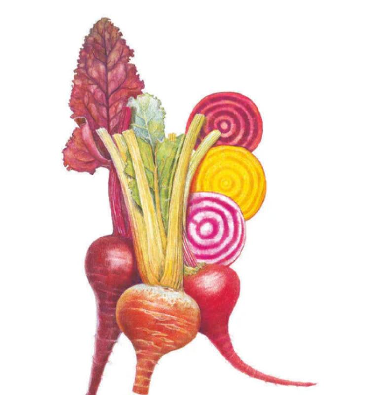 Join the beet fan club! Aside from the health benefits, which include significant amounts of fiber, potassium, folic acid, and vitamin C, beets come in many colors. 'Gourmet Blend' includes 'Detroit Dark Red' with deep red roots and delicious dark green tops, 'Chioggia' with interior rings of bright pink and white, and 'Golden' with bright yellow flesh.