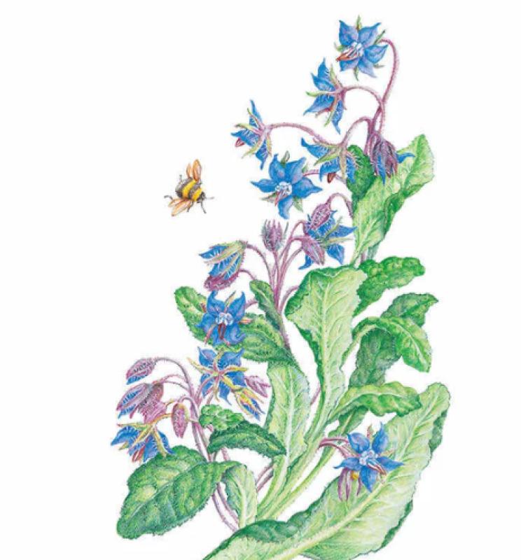 This 2'–3' tall, versatile herb is exquisite in the garden. In addition to attracting bees and other beneficial insects, it can be used as a cover crop. Edible, blue and sometimes pink flowers with a cucumber-like flavor can be used fresh to garnish dips, salads, and summer drinks, or candied with sugar for later use. The leaves and stems are also edible, delicious steamed like spinach or chard. Fairly drought tolerant once established.