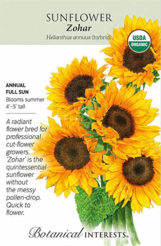 Bright as the sunrise, 4"–6" golden-yellow flowers on tall, sturdy stems are the backyard florist's dream come true. The Hebrew word, zohar, translates to "splendor" or "radiance", and this sunflower has both! 'Zohar' blooms just 2 months from sowing, and has an extra-long vase life (up to 12 days). With one flower per plant, sow every 2 to 4 weeks for continuous summer bloom and endless bouquets. Edible, bittersweet petals make a sunny garnish on salads and appetizer plates. Drought tolerant. Although pollenless, they do produce nectar for pollinators.