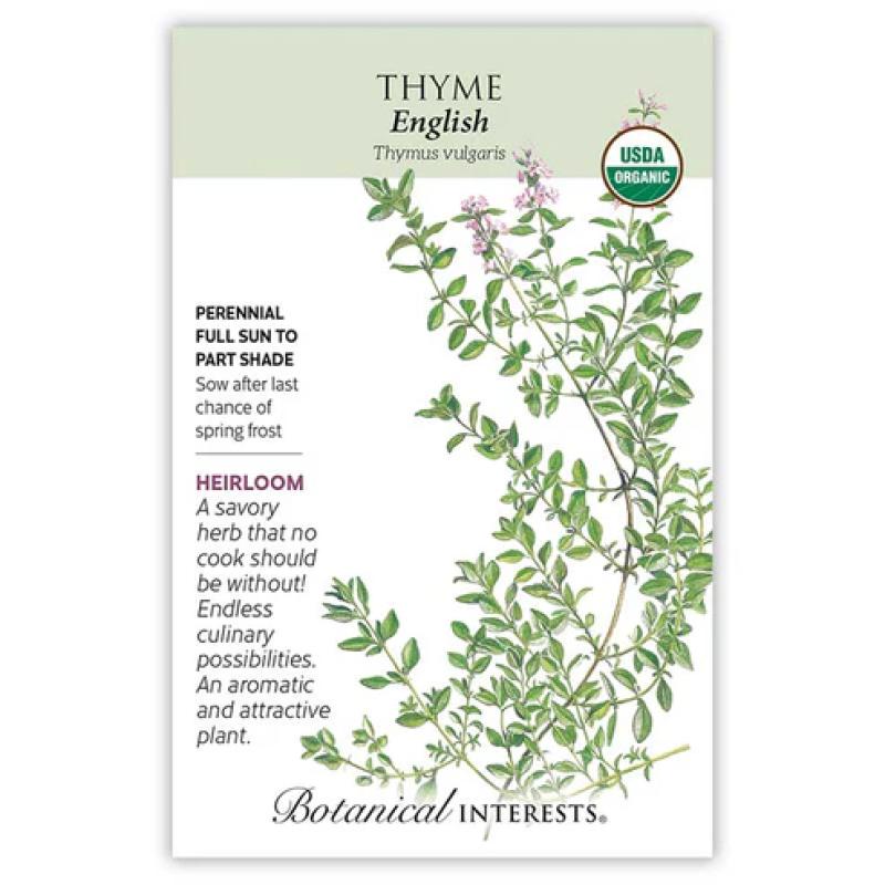 English Thyme is a classic, aromatic herb with small, fragrant leaves perfect for seasoning meats, vegetables, soups, and sauces. This hardy perennial thrives in full sun and well-drained soil, forming low, compact, and drought-tolerant plants ideal for garden beds or containers. Its versatile flavor and long-lasting growth make it a staple herb for culinary use and pollinator-friendly gardens.