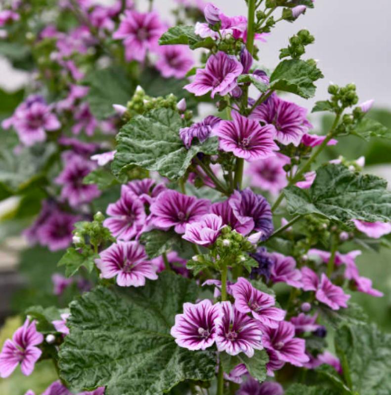 One tough perennial! 'Zebrina' sports soft pink flowers with striking, raspberry-purple veins, achieving a pinwheel effect. These outstanding 2", bowl-shaped flowers are produced in abundance from early summer to frost on robust, shrub-like plants. Heat and drought are not a problem for this perennial.