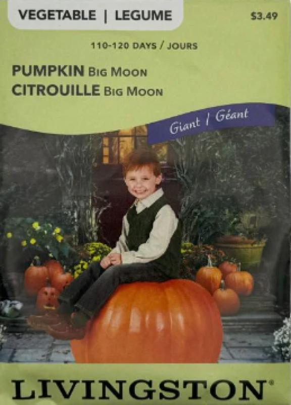 Classic prize winner! Big Moon is a bright orange fast growing beauty that can reach weights of 90kg (200lbs) or more. Add to your garden for a dramatic fall decoration touch. The tender flesh can be used for baking. Remove all but one fruit from the vine to grow a larger pumpkin.