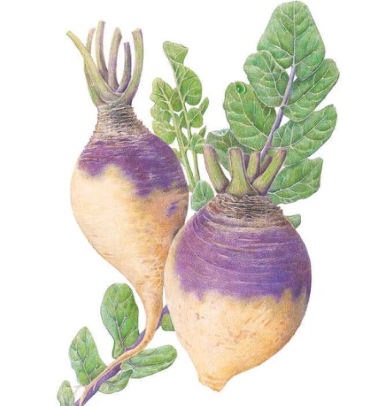 Rutabaga, or swede, as the British call it, is a 4"-6" long root vegetable with a sweet, mellow flavor. Mash just like potatoes, add chunks to soups and stews, or bake in savory or sweet casseroles. Even the tops are edible and make tasty sautéed greens. Rutabagas develop the best flavor when harvested during cool weather, making an ideal fall crop in most places. A great storage crop.