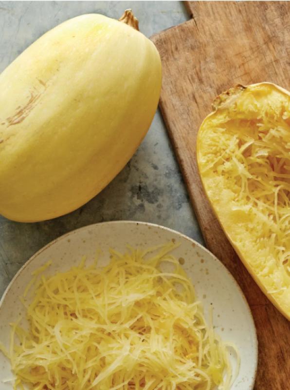 Heirloom squash produces plenty of medium-sized, 3–4 lb. oblong fruits. Flesh can be served up like spaghetti—an immediate hit with kids. CULINARY HINT: Slice fruit lengthwise, remove seeds, brush with olive oil and season with salt and pepper, roast face down until flesh fluffs out of shell with a fork for spaghetti-like appearance. Serve with marinara sauce or season to taste. Can be stored several months in a cool, dry place.