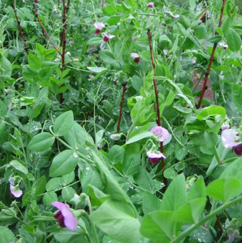 Offered in 1881 by D. M. Ferry & Co. of Detroit, Michigan, and called in their catalog "the most desirable of all the edible pod peas". The Dwarf Gray Sugar Pea lives up to its name: the edible, stringless, 3-4" pods are sweet and the prolific, 24-30" vines do not typically require staking. In addition, the bicolored flowers of purple and pinkish-white add an ornamental element to the vegetable garden.