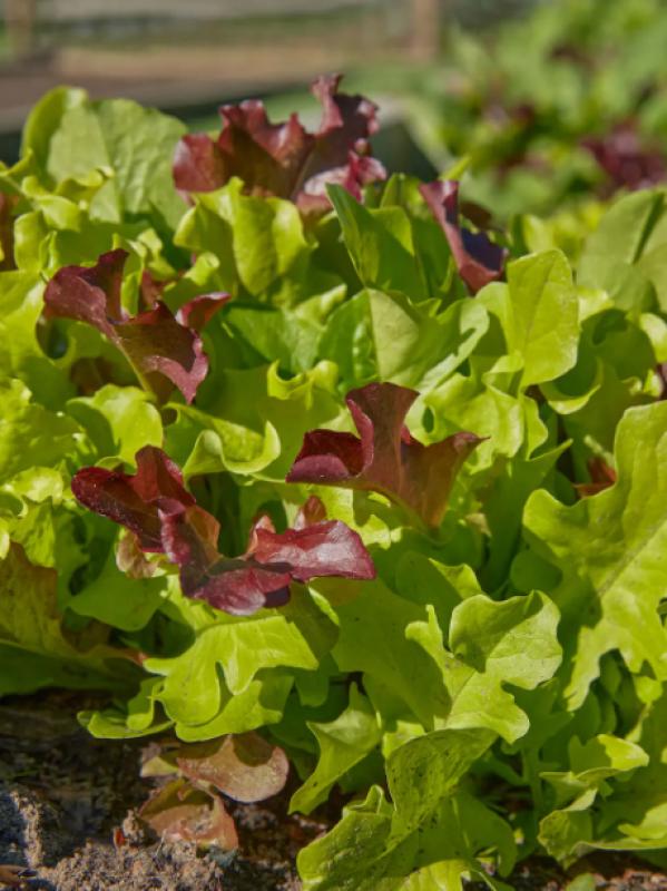 Gourmet Blend features a tasty and colorful mix of five looseleafs in shades from green to red and textures from oakleaf to tightly ruffled. Fast-growing, tender, colorful and tolerant of hot weather, our popular looseleaf blend is selected for a long harvest. Grows best in cool weather and can be planted in early spring or grown as a fall crop. Protect from heat with shade cloth. Likes fertile soil, ample water. Best when picked minutes before your meal. Space lettuce plants 8" apart.