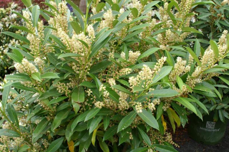 A handsome upright shrub for woodland gardens with filtered sunlight or dappled shade. Glossy, medium green foliage with a refined look on a dense, vase-shaped form that has a layered appearance. Stalks of fragrant white flowers appear in spring. Hardier than dwarf English laurel.