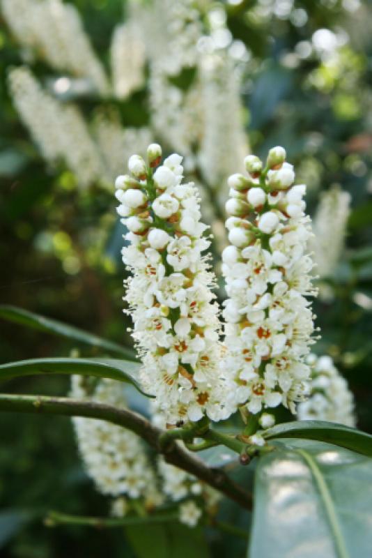 A handsome upright shrub for woodland gardens with filtered sunlight or dappled shade. Glossy, medium green foliage with a refined look on a dense, vase-shaped form that has a layered appearance. Stalks of fragrant white flowers appear in spring. Hardier than dwarf English laurel.