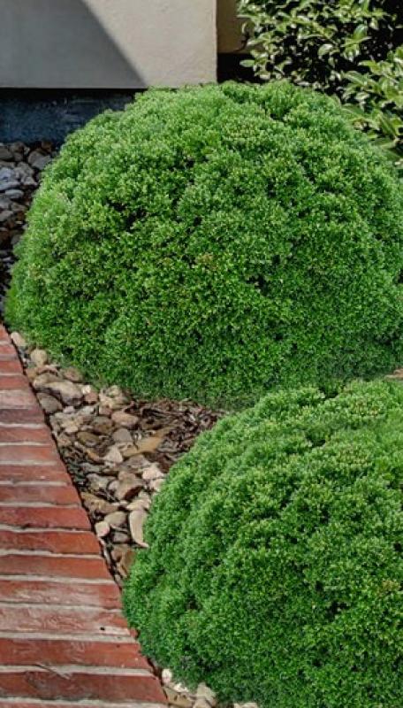 The 'Justin Brouwers' Dwarf Boxwood is a slow to moderate growing evergreen shrub with a compact mounded form if left to grow naturally. With pruning it can be kept in a globe shape. Its exceptional sun tolerance and small deep-green leaves makes it a great substitute for the popular English Boxwood, which is known to suffer from too much sun.