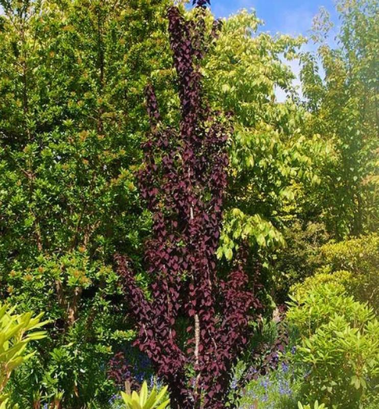Red Fox is a columnar selection of the Katsura tree, prized for its vibrant foliage and narrow form, making it an excellent choice for urban gardens, tight spaces, or vertical accents. New leaves emerge a rich reddish-purple, transitioning to a dusky green as the season progresses. In autumn, the tree puts on a spectacular show with shades of gold, orange, and apricot, accompanied by a distinct sweet fragrance often compared to caramel or cotton candy.