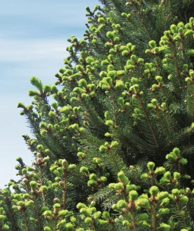 Elegant columnar selection, highly valued as an accent or perimeter planting where a strong vertical effect is needed. Dark green evergreen needles are slightly curved on closely set limbs, creating a slender, uniform form with dense branching to the ground. Withstands heavy snow loads. Tolerates heat and humidity better than others. Ideal windbreak or privacy wall.