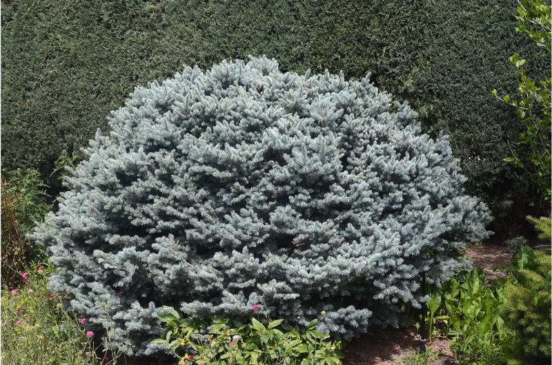 Picea pungens 'Montgomery' is a slow-growing, dwarf form of Colorado Blue Spruce, celebrated for its striking silvery-blue foliage and compact, globe-shaped habit. With age, it may develop a slightly more pyramidal form, but it maintains a dense, rounded appearance for many years.