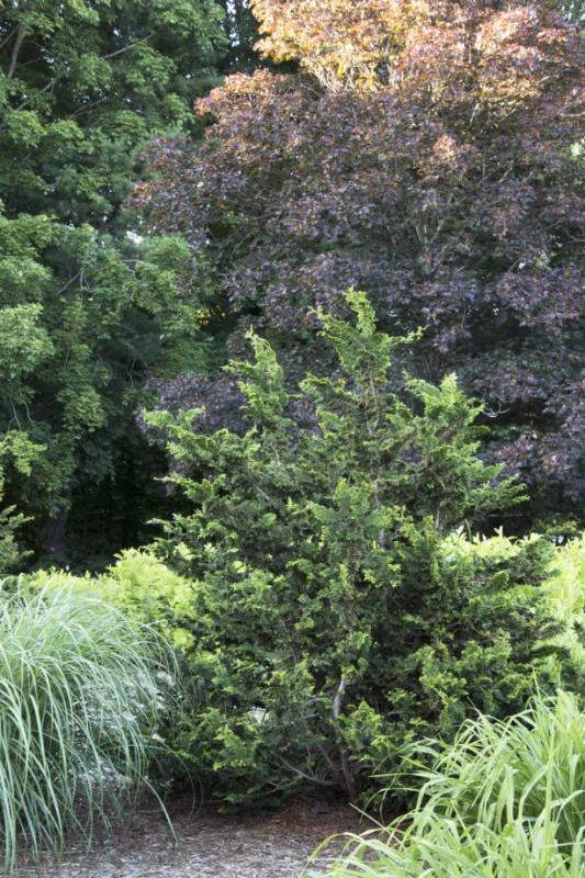 An attractive small evergreen tree with an open and irregular, narrow pyramidal form and gracefully curved limbs holding handsome fern-like green foliage. A wonderful specimen for an Asian-themed garden. Excellent for use in large planters or as an entryway accent.