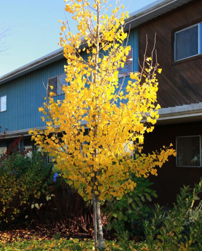 Outstanding in both the nursery row and the landscape, this seedless cultivar may set the new standard among Ginkgos. Selected by Dr. Michael Dirr, it has a strong central leader and full branching when young, then develops a dense upright crown when mature.