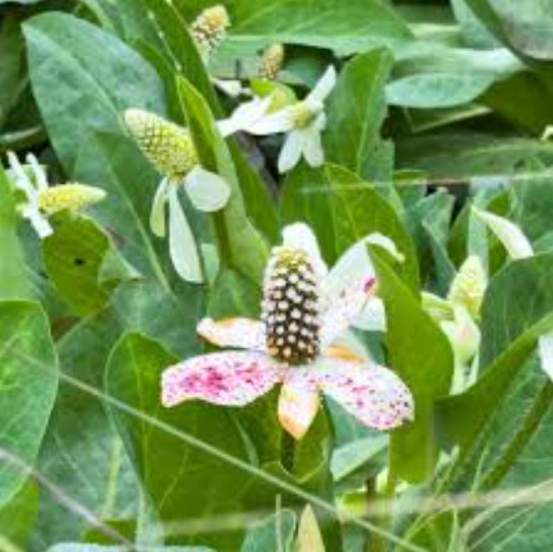 Anemopsis californica, or Yerba Mansa, is a unique, native perennial plant from southwestern North America known for its distinctive cone-shaped white flowers surrounded by petal-like bracts, and its distinctive red color change in the fall. It prefers moist, damp conditions, thrives in wetlands, and spreads to form groundcover. The plant has a long history of traditional medicinal use for its antimicrobial, antibacterial, and anti-inflammatory properties, particularly for treating wounds, inflammation, and various ailments