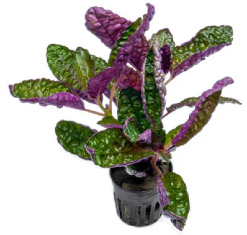 Purple Waffle plant is a unique terrarium plant that is commonly seen in stores being sold as a true aquatic plant. Beware, this plant is not fully aquatic and can only live submerged for extended periods before melting away. This plant will thrive when grown emersed in a high humidity environment such as terrariums or paludariums. The leaves are green on top with a bright purple underside. The texture of the leaves are ruffled and wrinkly which provides an excellent contrast to other types of foliage.