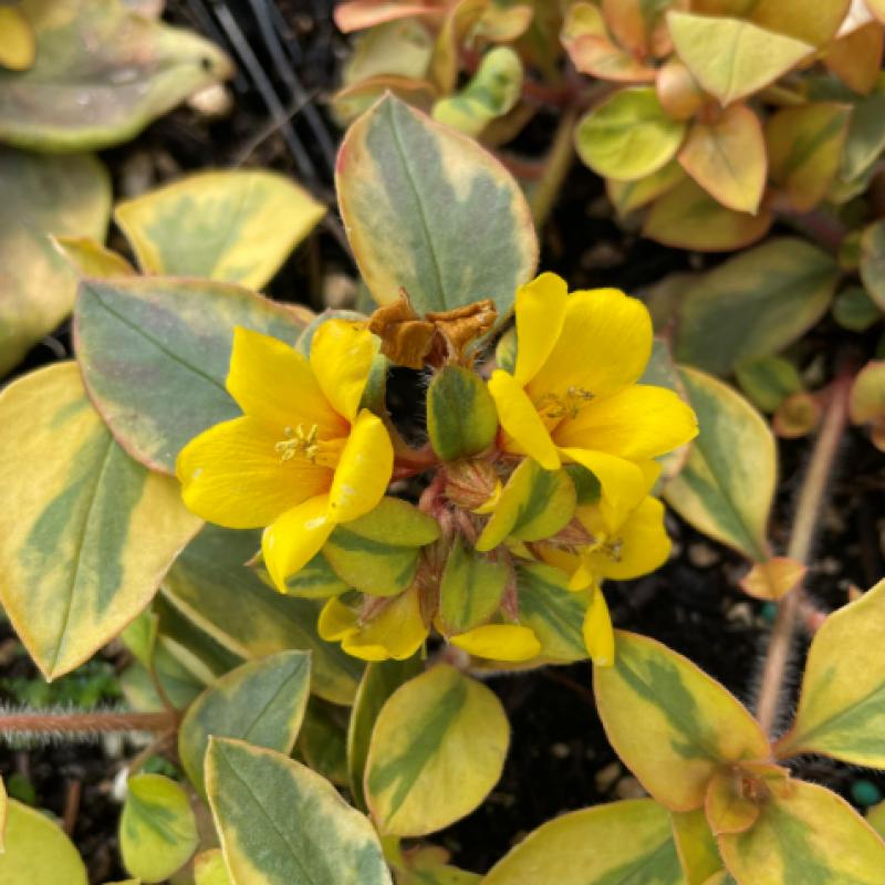 Lysimachia congestiflora is a spreading groundcover with bright yellow flowers, also known as Golden Globes or Dense-flowered Loosestrife. It is a marginal plant, suitable for planting along the edges of ponds or other moist areas where it thrives in full sun to partial shade in moist, well-drained soils. Cultivars like 'Outback Sunset' offer variegated foliage, making it a striking option for borders, rain gardens, and containers.