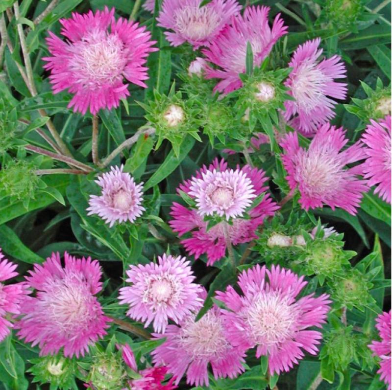 Blooms open white in May, fade to light lavender, and then to purple, creating a colorwheel effect. Broad, lance-shaped, evergreen leaves with white midveins take on a maroon fall color. Long blooming if kept deadheaded.