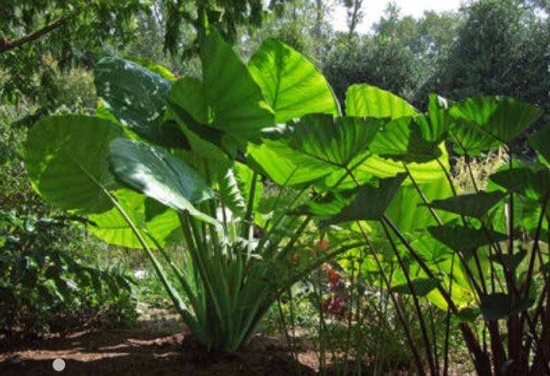 Colocasia gigantea Thailand Giant Strain's leaves grow to 5' long and 4' wide in one season with ample water and fertilizer. A mature plant will reach 9' tall by 15' wide! Clusters of fragrant, white flowers throughout the season are an added bonus.