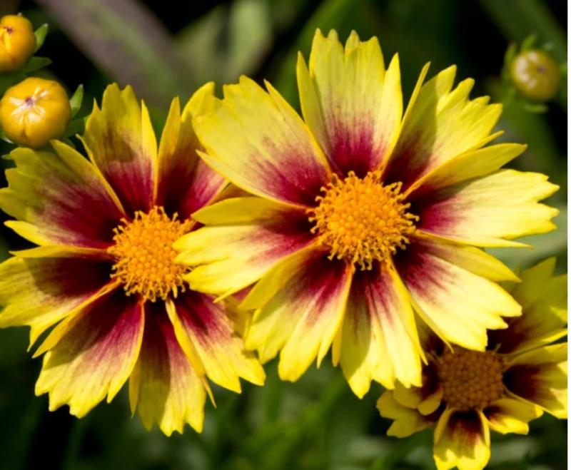 Coreopsis Enchanted Eve is ten years in the making to become disease and deer resistant that will be a proven delight in your garden. Beautiful burgundy petals with yellow edges bloom from early summer until early fall with no deadheading needed!