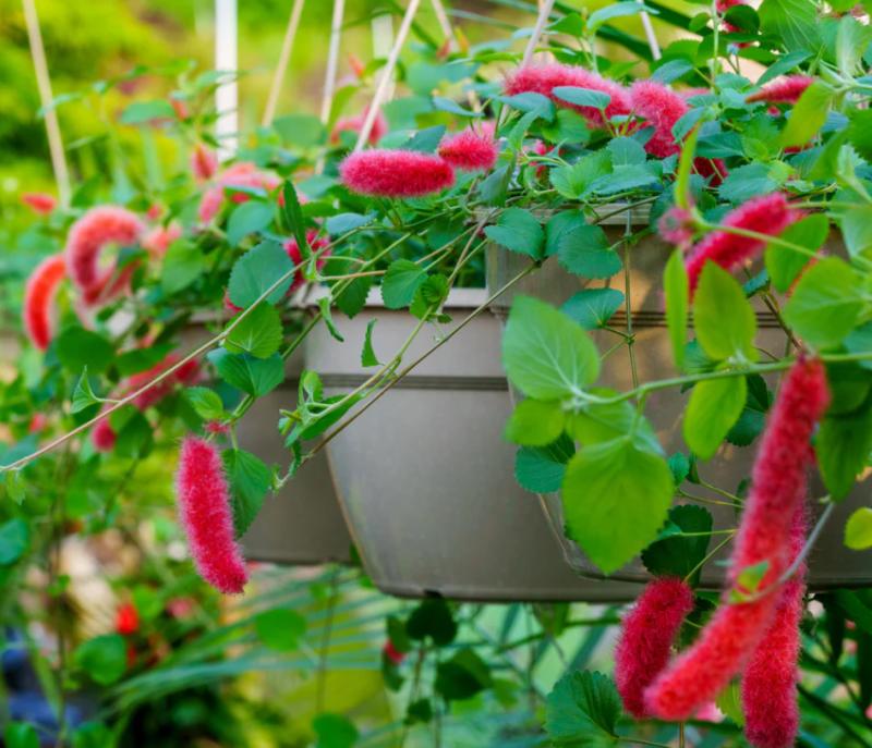 Chenille Foxtail (Acalypha hispida) is an eye-catching tropical plant known for its striking red, fuzzy flowers that resemble soft, cascading foxtails. Its bold appearance makes it a stunning addition to gardens, containers, or indoor spaces with ample light.
