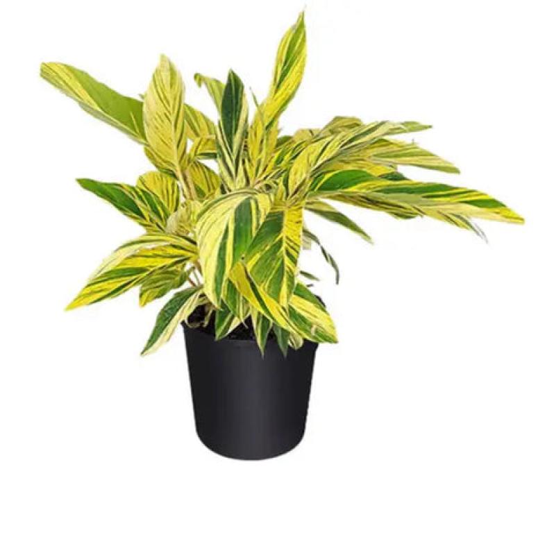 Alpinia ‘Variegata’ is a striking tropical plant known for its bold green leaves edged with creamy white variegation that adds instant brightness to landscapes and containers. It has an upright, clumping growth habit and brings a lush, architectural feel to gardens, especially in warm, humid climates. Ideal for partial shade, this plant is valued for its foliage interest and low-maintenance nature once established.