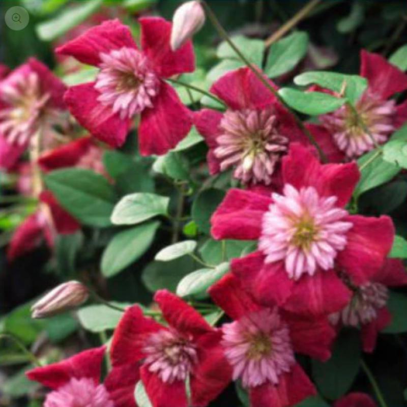 produces distinctive red and pink flowers. A gem of a clematis! This easy and vigorous clematis sports flowers all through summer in a two-tone display of beautiful button blossoms.