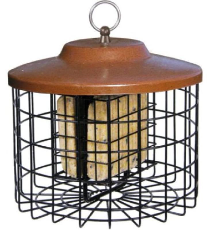 The Squirrel Proof Double Suet Feeder deters gray squirrels and large birds from reaching suet cakes. Feeder attracts clinging birds such as Woodpeckers, Nuthatches and more. Durable metal construction has a weather-resistant finish. depth: 9.4 width: 10 length: 10.